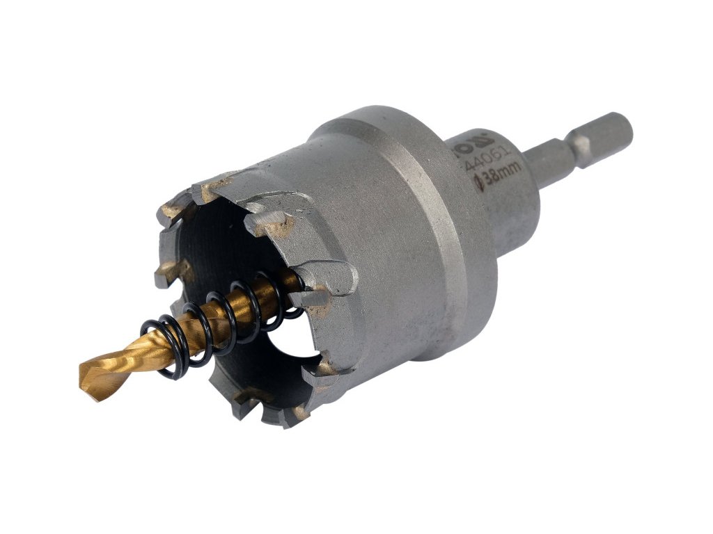 Átmérő: 38MM, VÁGÁSI MÉLYSÉG: 25MM, TELJES HOSSZ: 103MM, Szinterelt karbid YG10X, MAGANYAG: SZÉNTARTALMÚ ACÉL, PILOTA FÚRÓ ANYAGA: HSS4341 TIN, MÉRET: 6MM, HEX-6.3MM FOGANTYÚ, 1 CSOMAG. IMBUSZKULCS, 1DB. KIFÚVÓ RUGÓ, ALKALMAZÁS: KONSTRUKCIÓS ACÉL (HEA, HEB TORONY, ELEKTROMOS ELŐOSZTÓK, GÁZ DOBOZOK), ROZSDAMENTES ACÉL, Műanyag (ABS, PE, PVC, ÜVEGSZÁLAS ERŐSÍTÉSSEL is).