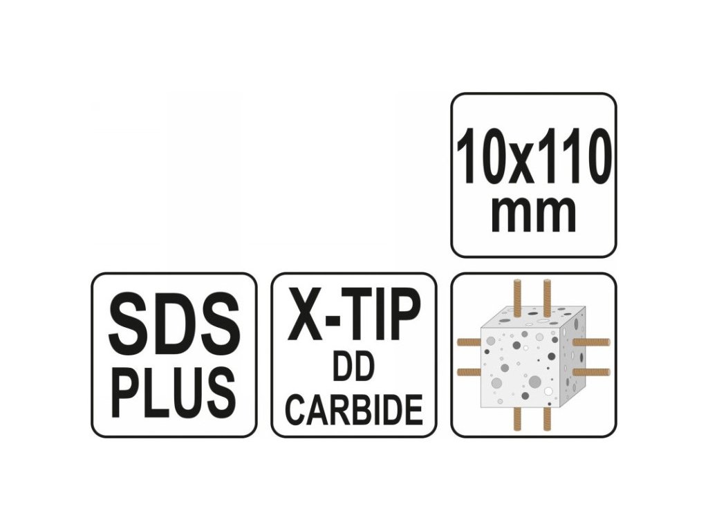 YATO špirálový vrták do kameňa 10 x 110/50 mm štvorčepeľový SDS-Plus