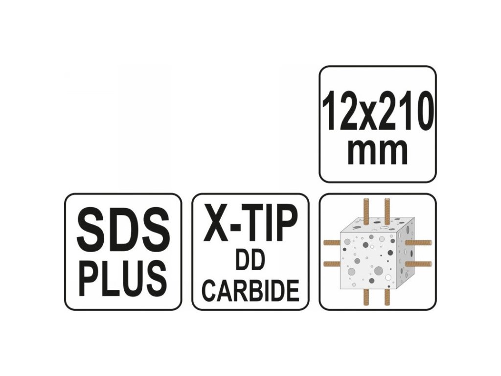 Vrták do skál 12 x 210/150 mm štvorcový SDS-Plus YATO