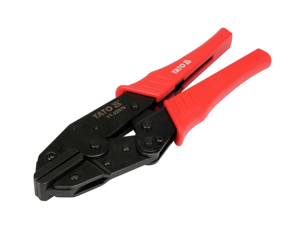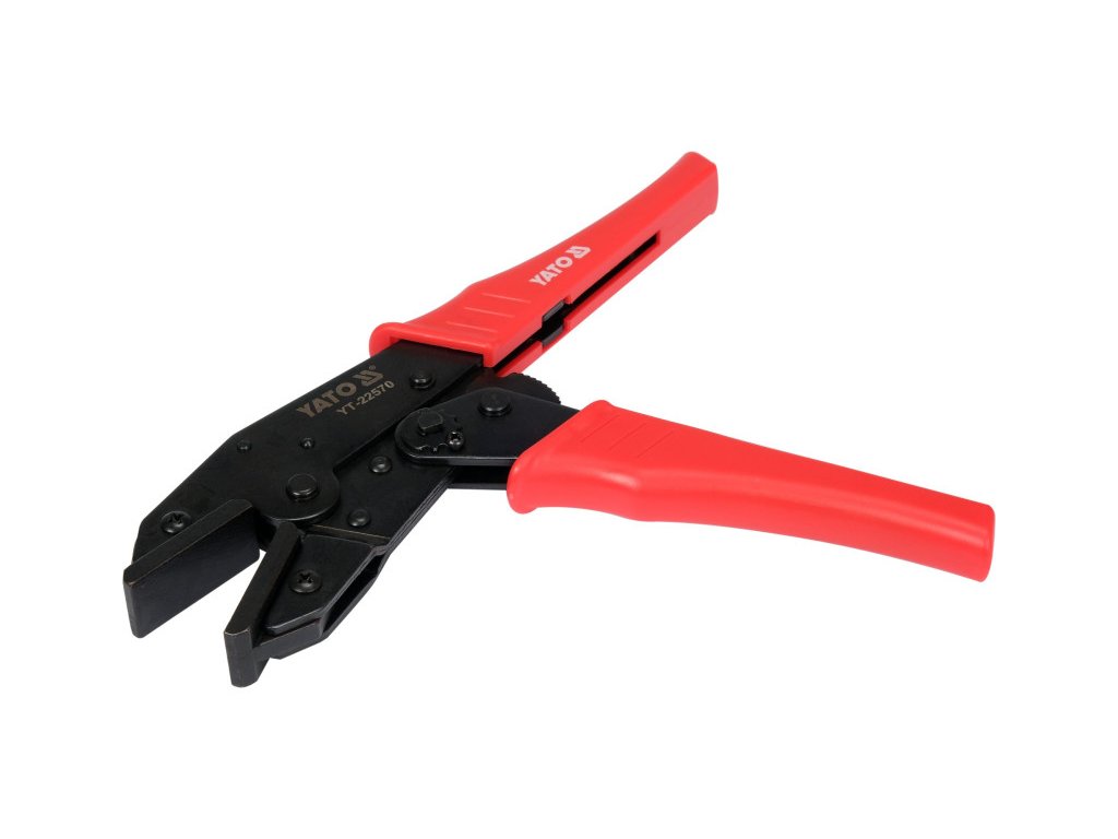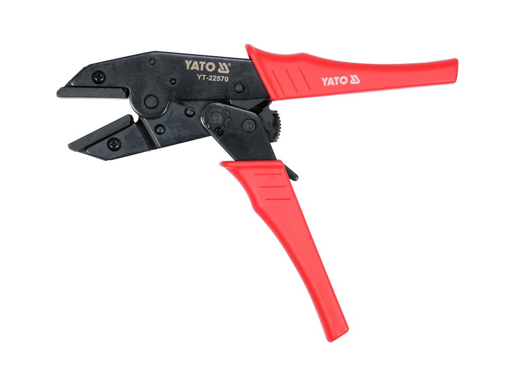 Fűtőfilm csatlakozók préselésére szolgáló fogó. A racsnis mechanizmus gyors és precíz szorítást tesz lehetővé túlzott erőkifejtés nélkül. A feketedett felület védi az eszközt a korróziótól.