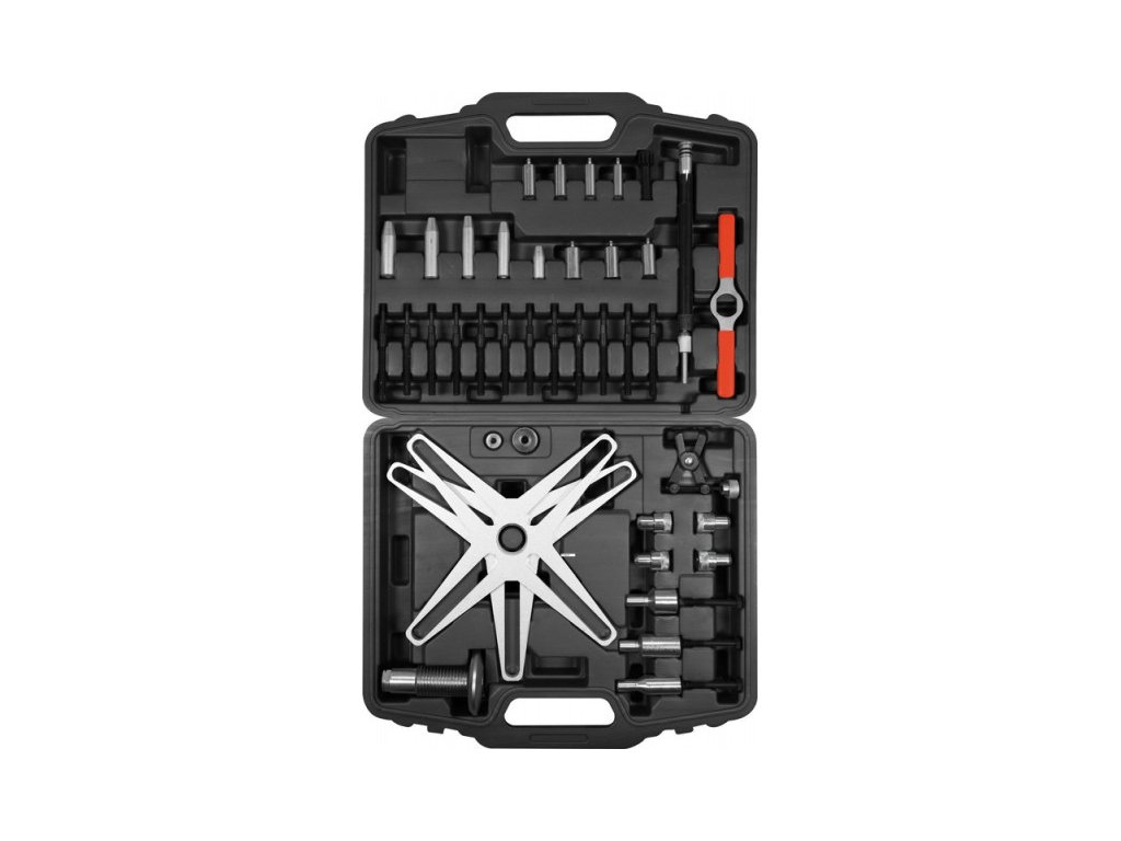 A készlet szinte minden típusú 3 és 4 lyukú SAC kuplung számára megfelelő. Lehetővé teszi a önbeálló kuplungok szakszerű beszerelését/eltávolítását károsodás nélkül és a kuplungot a megfelelő pozícióban tartja, ami növeli a végzett munka pontosságát .