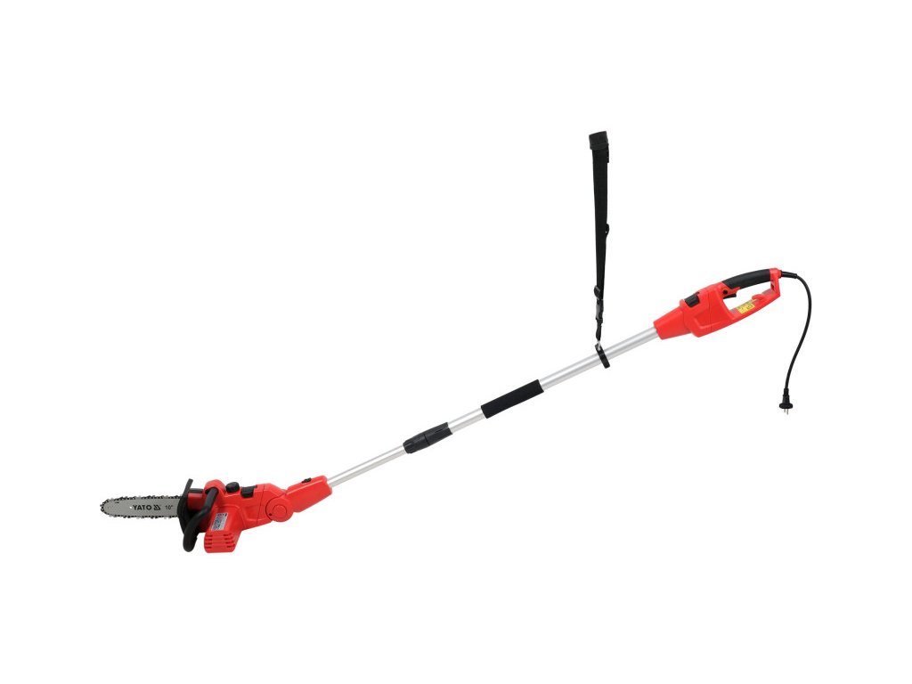 A készülék két funkciót egyesít - elektromos láncfűrész és teleszkópos ágnyeső gép az ágak megmetszéséhez. Kényelme érdekében az ágak metszésekor a fűrészfej pozícióját két síkban is beállíthatja - dönthető a vezetősínhez képest és forgatható a tengelye körül.