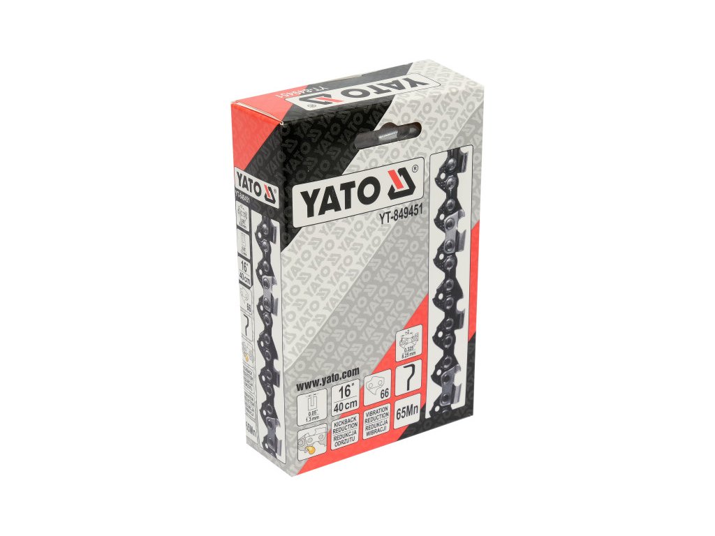 A Yato robbanómotoros és elektromos láncfűrészekhez való vágólánc. Magasan vágó vágófog nagy vágási sebességgel. Tiszta és közepesen szennyezett fa vágására tervezve. MN65 mangánacélból készült, ami nagyobb törési szilárdságot biztosít, így meghosszabbítja a lánc élettartamát. Anyag: & nbsp; 65mn acél lánc furat: & nbsp; 0,325" (8,25 mm) Barázda vastagság: & nbsp; 0,05" (1,3 mm) Automatikus lánc kenés: igen visszaverődés csökkentése: igen rezgéscsökkentés: YATA láncok rendelkeznek a munka biztonságát és kényelmét növelő egyedi rendszerekkel: kenőrendszer, amelynek köszönhetően az olaj egyenletesen oszlik el a vezető teljes hosszában. Ez csökkenti a súrlódási ellenállást, csökkenti a vezető felmelegedését és meghosszabbítja a teljes vágórendszer élettartamát. Rezgéscsökkentés - a vágófogak speciális szerkezete nem továbbítja a rezgéseket a láncról a vezetőre, ami 25%-kal csökkenti a rezgésszintet. Ez jelentősen növeli a munka kényelmét, főleg hosszabb ideig tartó használat esetén. Visszaverődés csökkentése - az úgynevezett kickback - a speciálisan tervezett vezető cellák csökkentik a visszaverődés kockázatát vágás közben, ami jelentősen növeli a munkabiztonságot.
