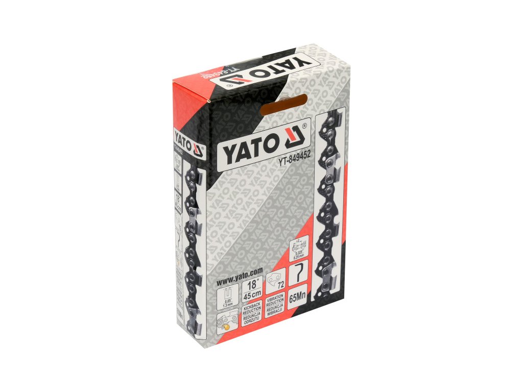 A Yato égő és elektromos láncfűrészeinek vágólánca. Magas sebességű vágófog. Tiszta és közepesen szennyezett fa vágására tervezve. A MN65 mangánacélból készült, ami megnöveli a szakítószilárdságot, így meghosszabbítja a lánc élettartamát. Anyag: & nbsp; 65mn acél lánc osztás: & nbsp; 0.325 "(8.25 mm) Horonyvastagság: & nbsp; 0.05" (1.3 mm) Automatikus lánc kenés: igen visszaverődés csökkentése: igen rezgéscsökkentés: A YATA láncok egy sor egyedülálló rendszert tartalmaznak a munka biztonságának és kényelmének növelésére: kenőrendszer, amelynek köszönhetően az olaj egyenletesen oszlik el az útmutató teljes hosszában. Ez csökkenti a súrlódási ellenállást, csökkenti az útmutató melegedését és meghosszabbítja az egész vágórendszer élettartamát. Rezgéscsökkentés - a vágófogak speciális szerkezete nem továbbítja a rezgéseket a láncról az útmutatóra, ami 25%-kal csökkenti a rezgésszintet. Ez jelentősen növeli a munka kényelmét, különösen hosszú távú használat esetén. A visszaverődés - az úgynevezett kickback - csökkentése - a speciálisan tervezett vezetőcellák csökkentik a visszaverődés kockázatát vágás közben, ami jelentősen növeli a munkabiztonságot.