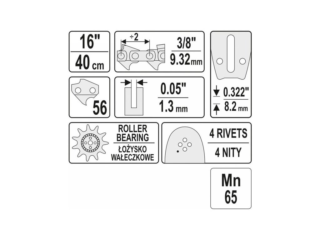 A YATO vezetőknek speciális kenőrendszerük van, olajtartállyal, ahonnan a lánc olajat gyűjt és egyenletesen elosztja azt a sín teljes hosszában. Ez csökkenti a működési ellenállást és növeli a hűtést, ami jelentősen meghosszabbítja a teljes vágórendszer élettartamát. A YATO vezetők otthoni és professzionális használatra készültek. Ideálisak ház körüli munkákhoz, kerti munkákhoz. Sikeresen használhatók fa kivágási munkákhoz is.