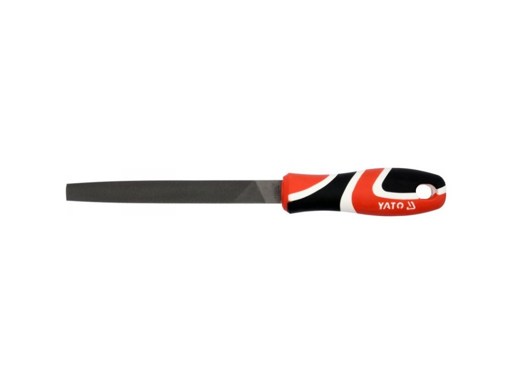 Sima reszelő, keskenyedő , háromvágású, 150 mm hosszúságú, háromkomponensű nyéllel a Yato-tól.