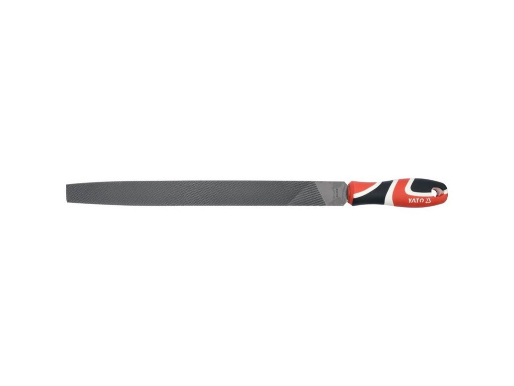 Lapos, keskeny, háromszor vágott fém reszelő, 300 mm, háromkomponensű nyéllel a Yato-tól.