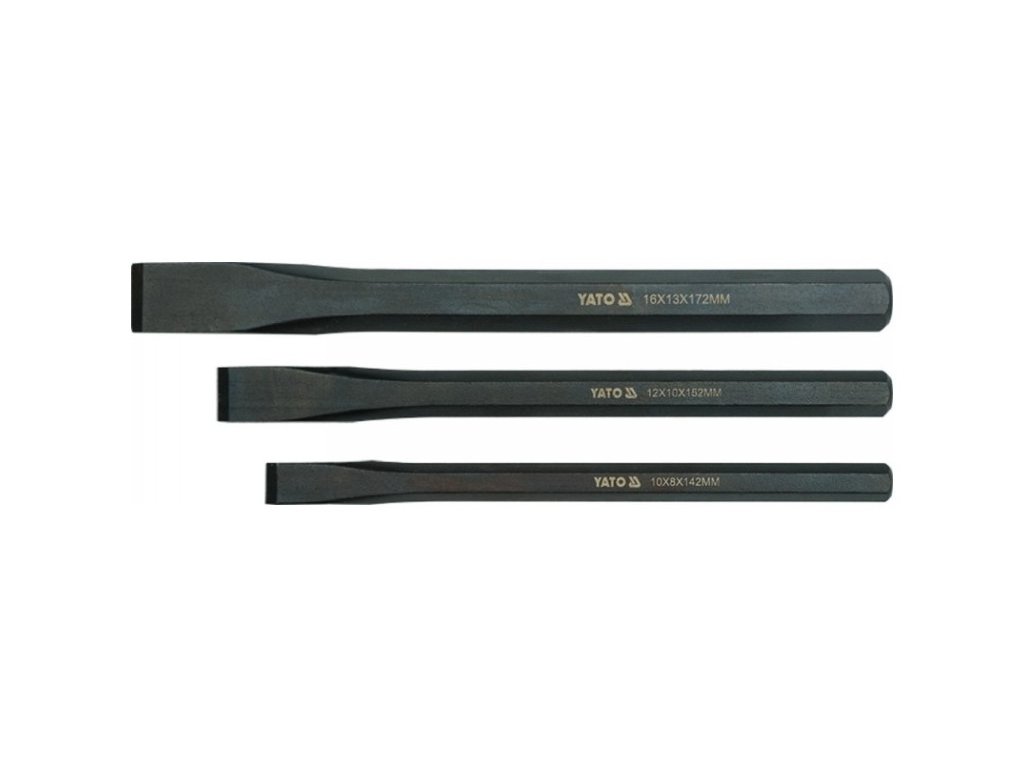 CrV acél hatszögletű rudakból készült szerszámok, feketedett felület. Műhely vésőkészlet fém munkákhoz.