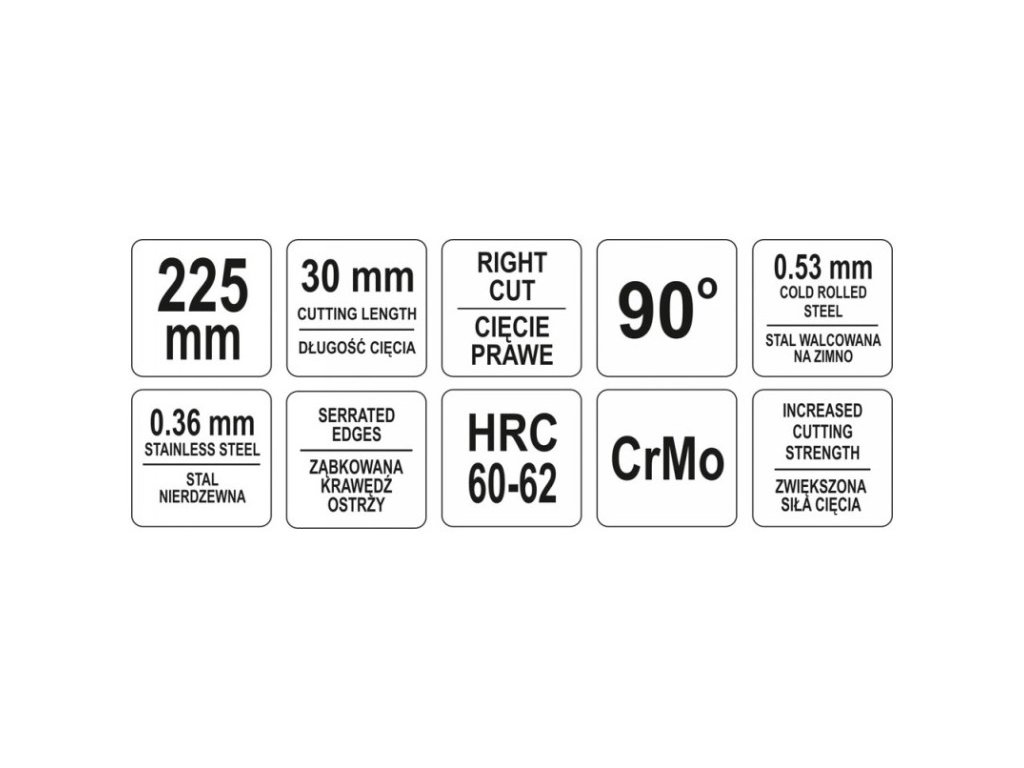 YATO nožnice na rezanie tanierov 225 mm pravé 90 stupňov CrMo
