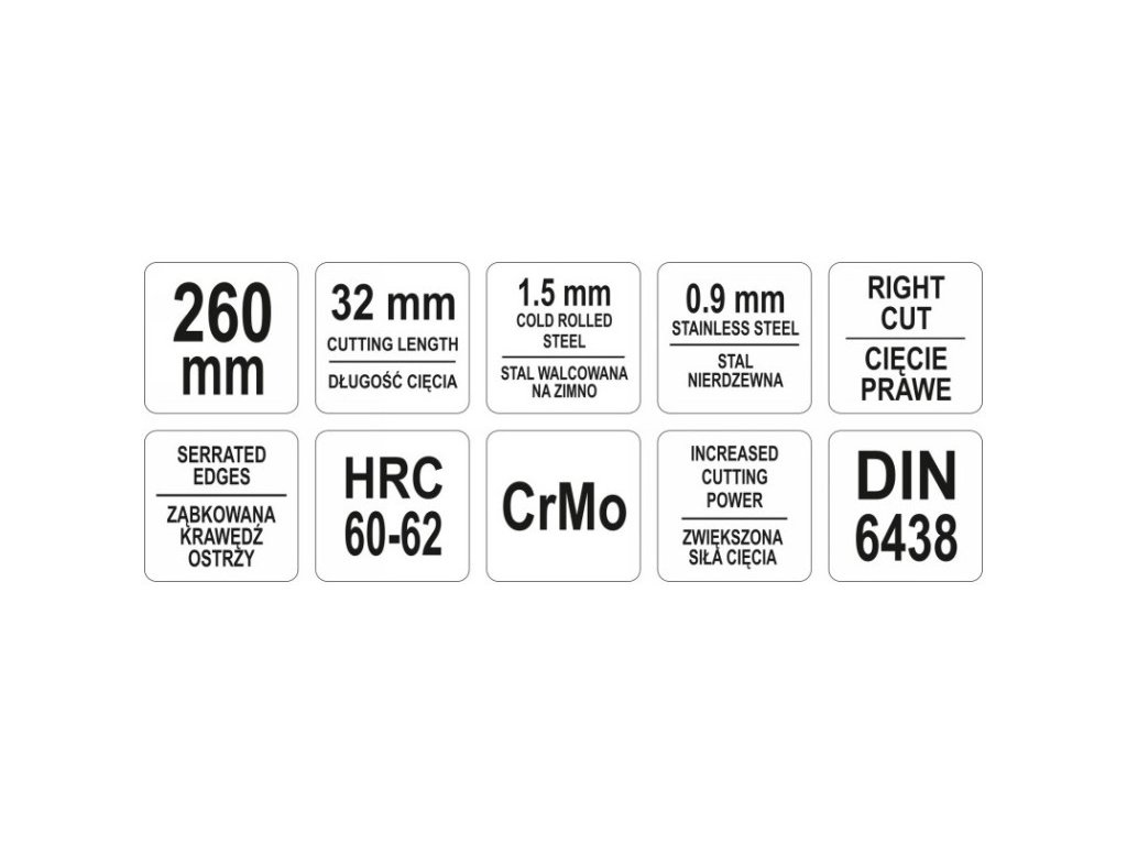 YATO nožnice na rezanie tanierov 260 mm pravé