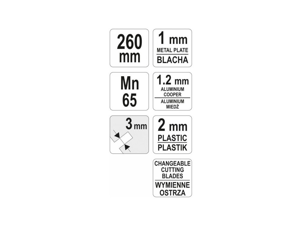 Nožnice na strihanie plechov 260 mm výkyvný jazyk YATO
