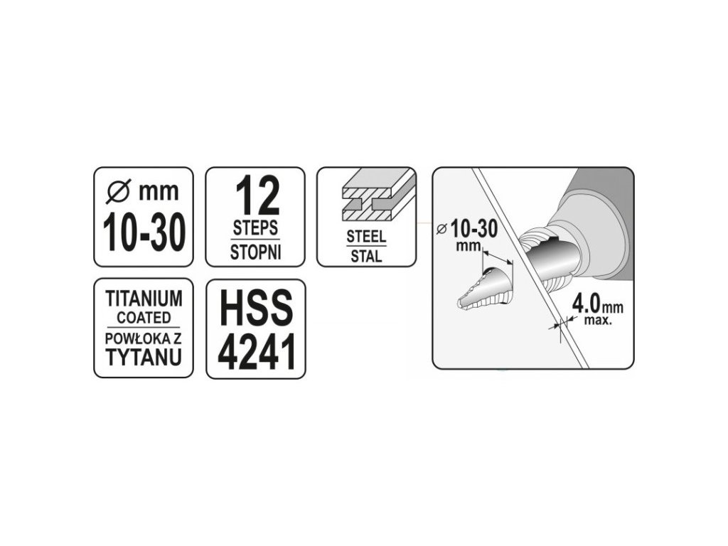 YATO Stupňový vrták 10-30 mm 12 stupňov HSS nitrid titánu