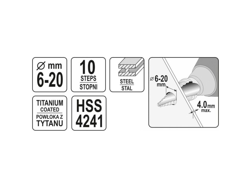 YATO Stupňový vrták 6-20 mm 10 stupňov HSS nitrid titánu