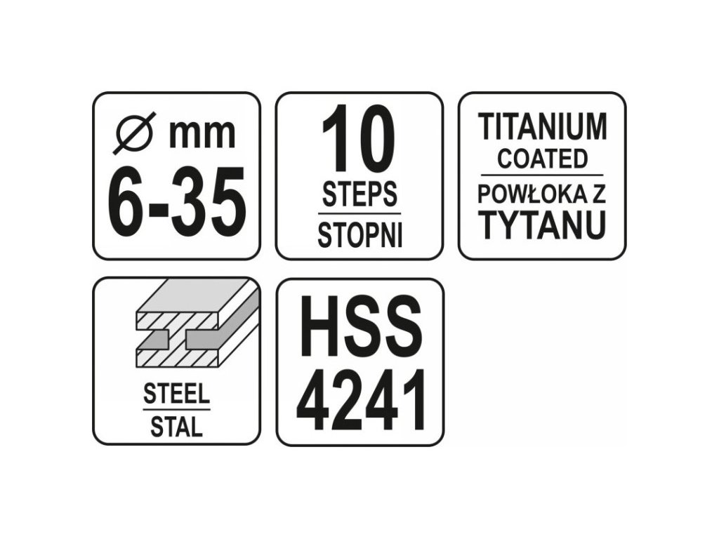 YATO Stupňový vrták 6-35 mm 10 stupňov HSS nitrid titánu