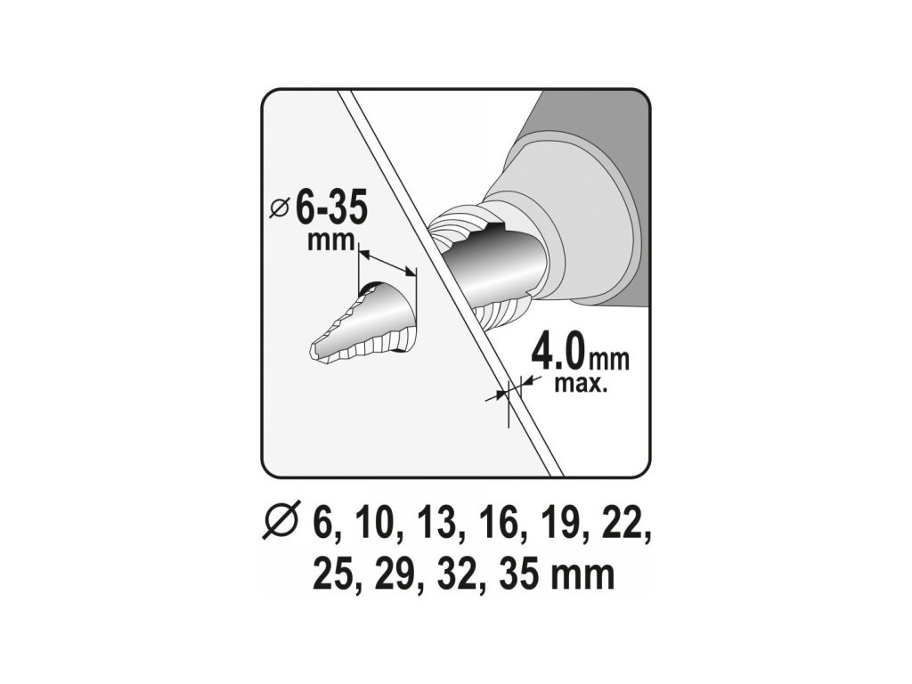 Stupňovitý vrták 6-35 mm 10-stupňový HSS titán-nitrid YATO