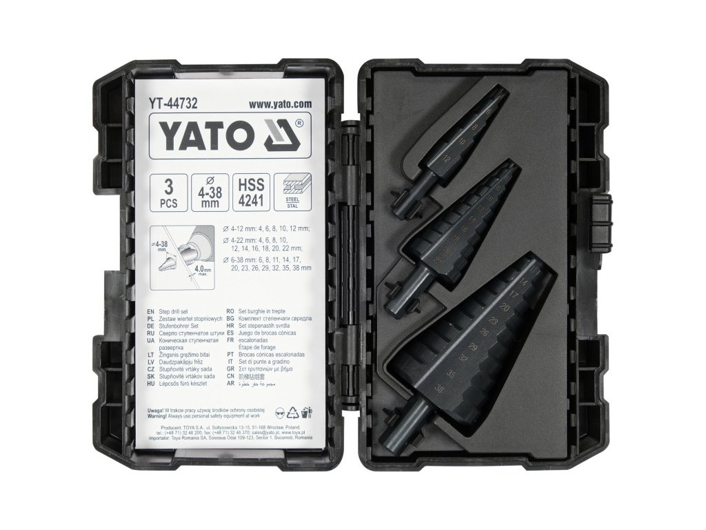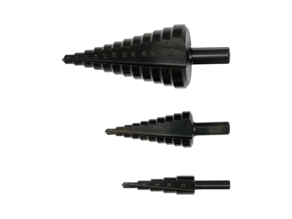 Három lépcsős fúrókészlet magas minőségű rozsdamentes acélhoz, szerkezeti acélhoz, hidegen hengerelt acélhoz, nem-vasfémekhez, acéllemezekhez és műanyagokhoz.