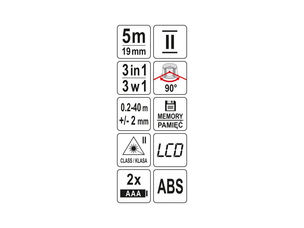 Laserová meracia páska 5 m x 19 mm 40 m YATO