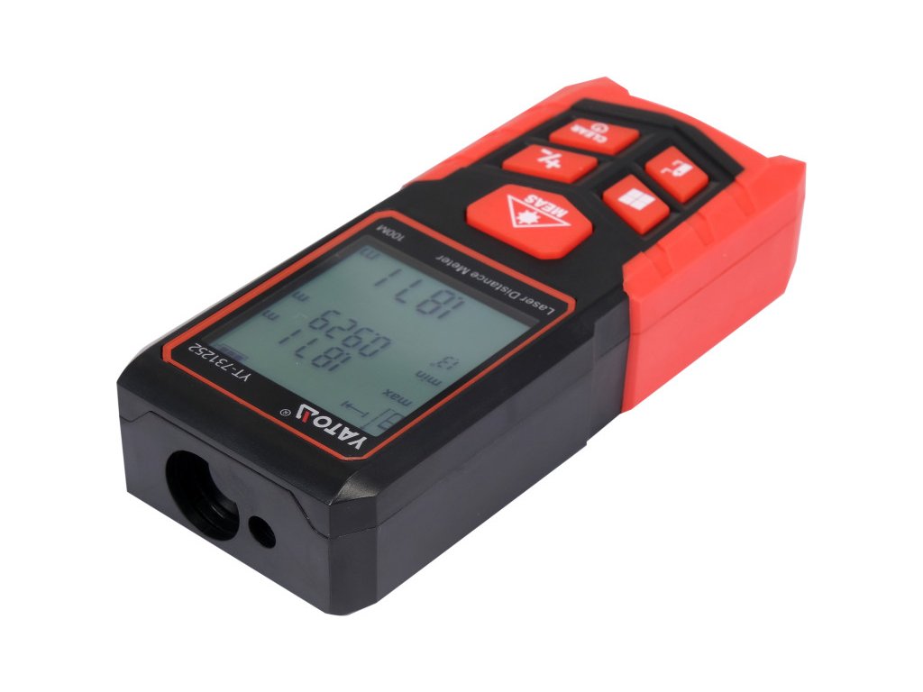 Lézeres távolságmérő gyors és pontos távolságmérésekhez 0,05-től 100 méterig. Belső távolság- és térfogatmérésekhez. Kalibrációs funkcióval és kényelmes hordtáskával rendelkezik.