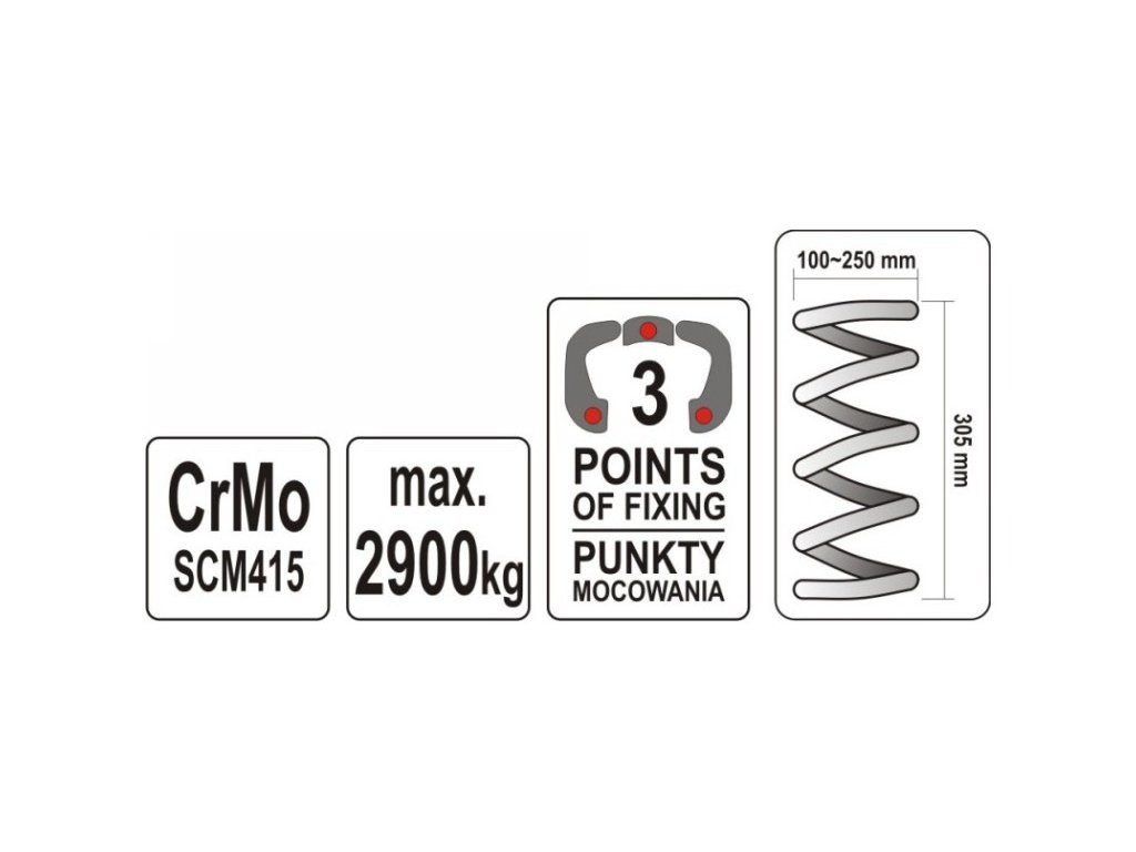 • Hmotnosť: 9,75 kg • Veľkosť: 10-250 mm • Dĺžka: 460 mm • max sila: 2900 kg