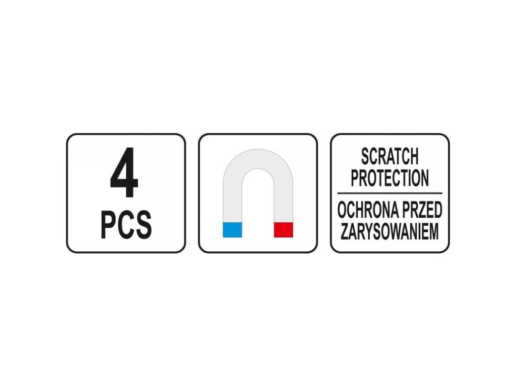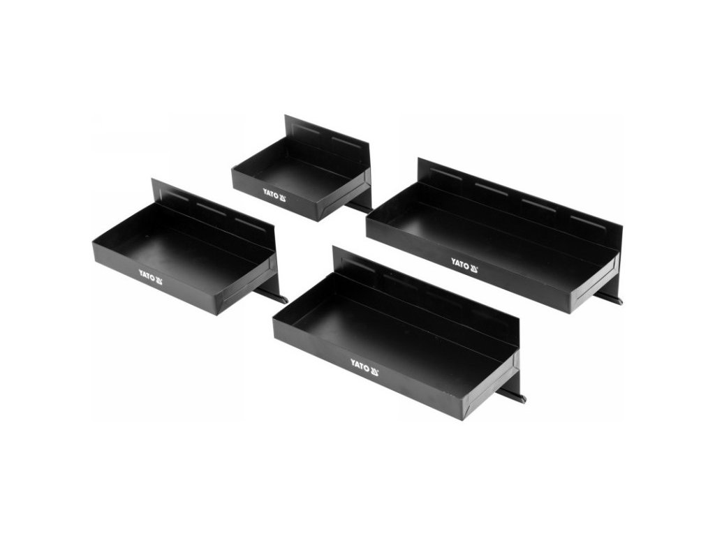 4-dielna policová súprava z odolného oceľového plechu, ideálna na uloženie drobného náradia a príslušenstva používaného v autodielňach.