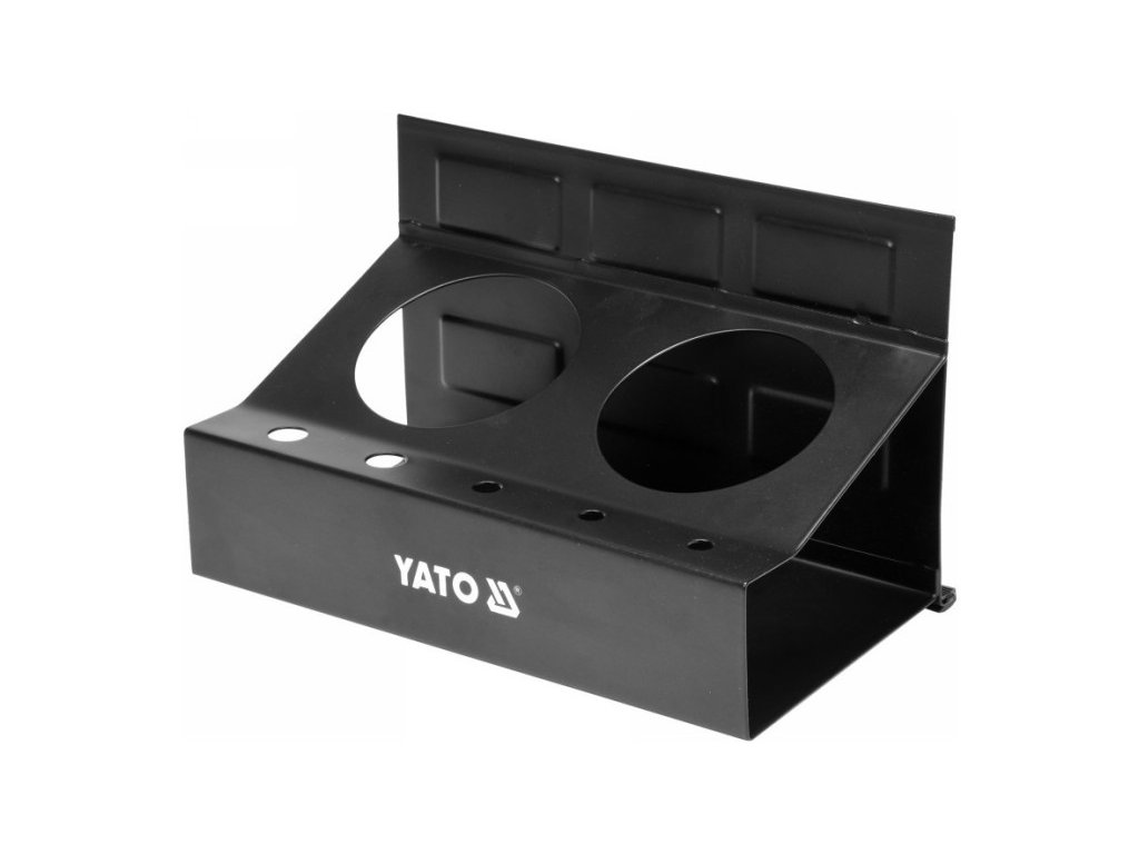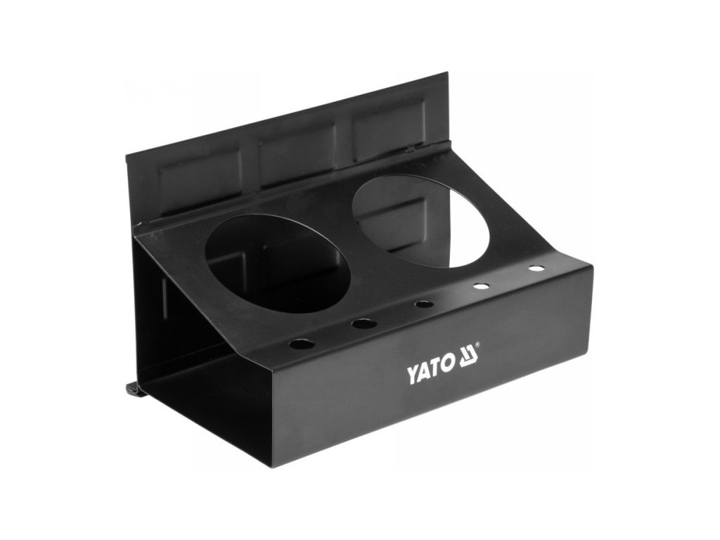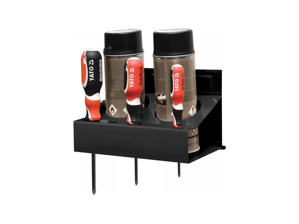 Držiak náradia z odolného oceľového plechu, odolného voči poškriabaniu a mechanickému poškodeniu, ktorý slúži na odkladanie drobného náradia, príslušenstva a chemikálií používaných v autodielňach.