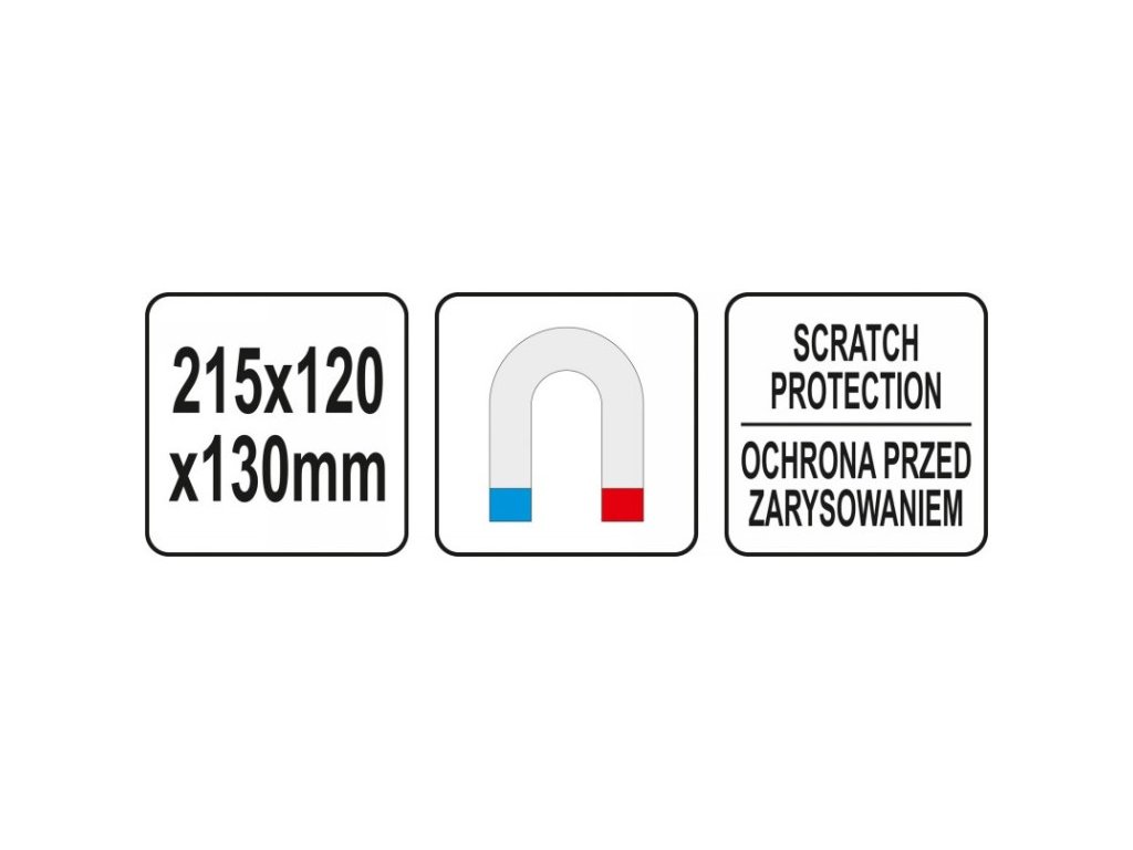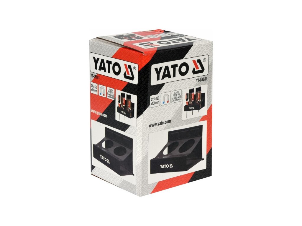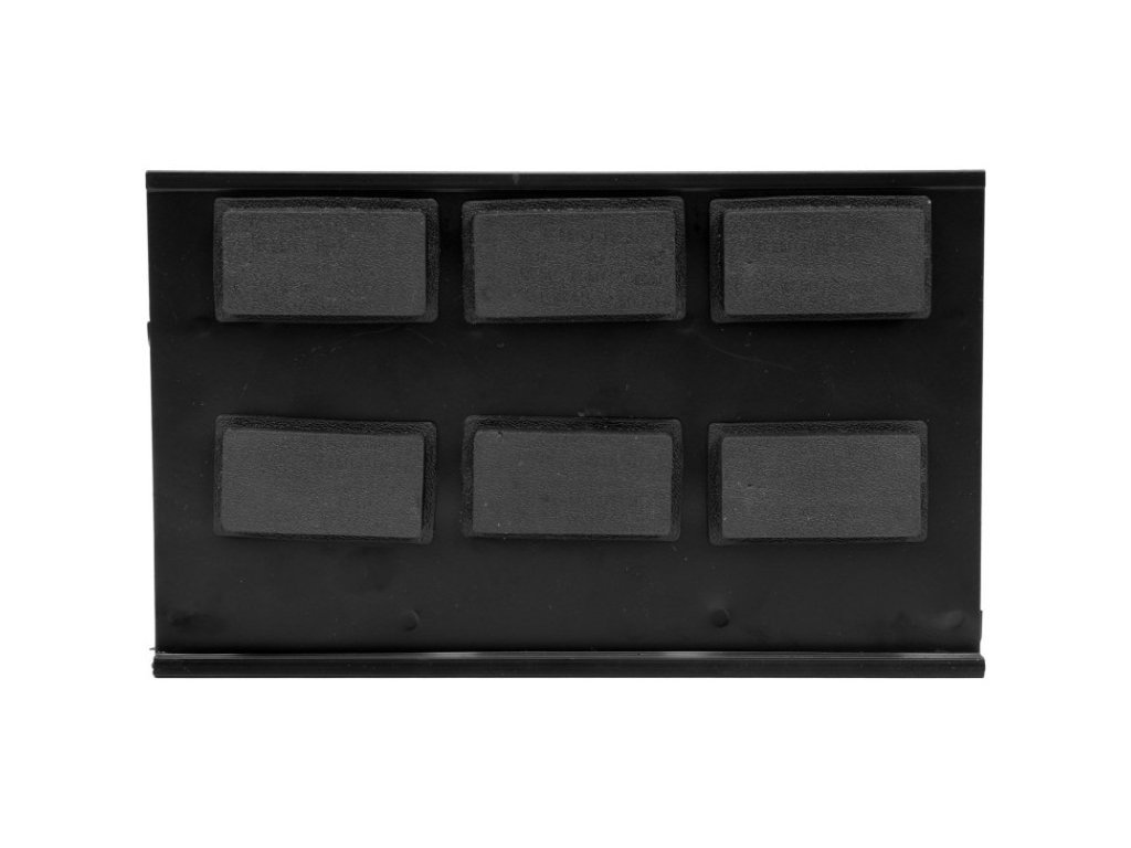 Zadná stena držiaka náradia 215x120x130 mm je vybavená 6 magnetmi, vďaka ktorým sa pevne prichytí na kovové police, kovové steny alebo skrinky na náradie.
