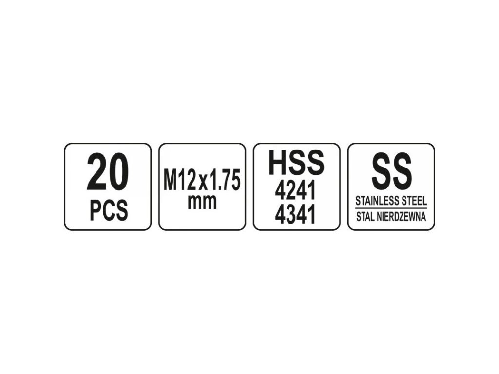 Súprava na opravu závitov 20 kusov M12 1,75mm YATO