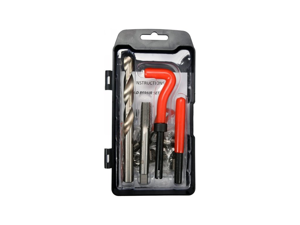Az elromlott menetek újraépítésére tervezve. A készlet elemei strapabíró rozsdamentes acélból készültek.