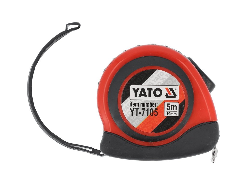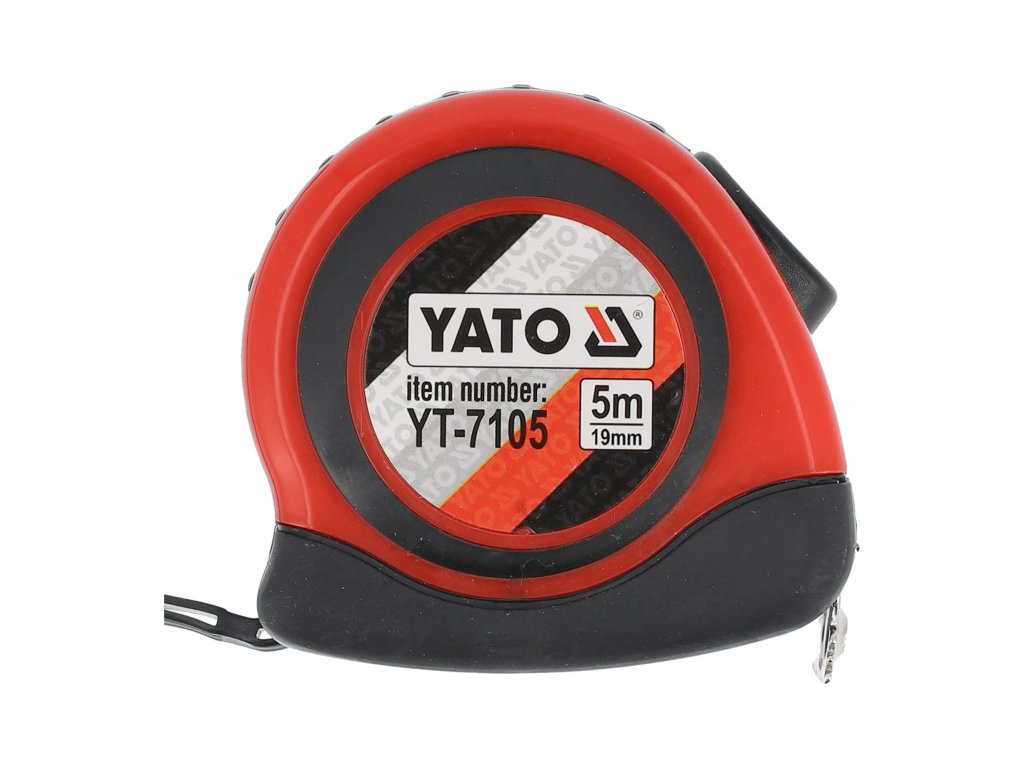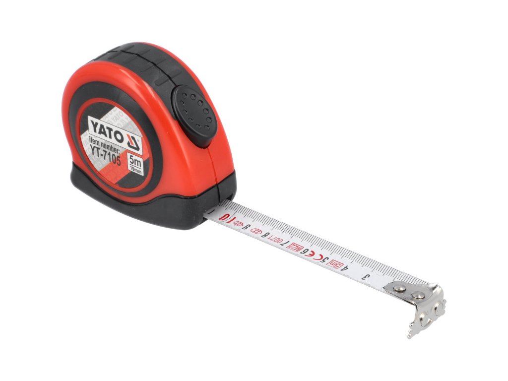 Professzionális 5 m hosszú mérőszalag ABS műanyag tokban, csúszásgátló fekete gumi bevonattal.