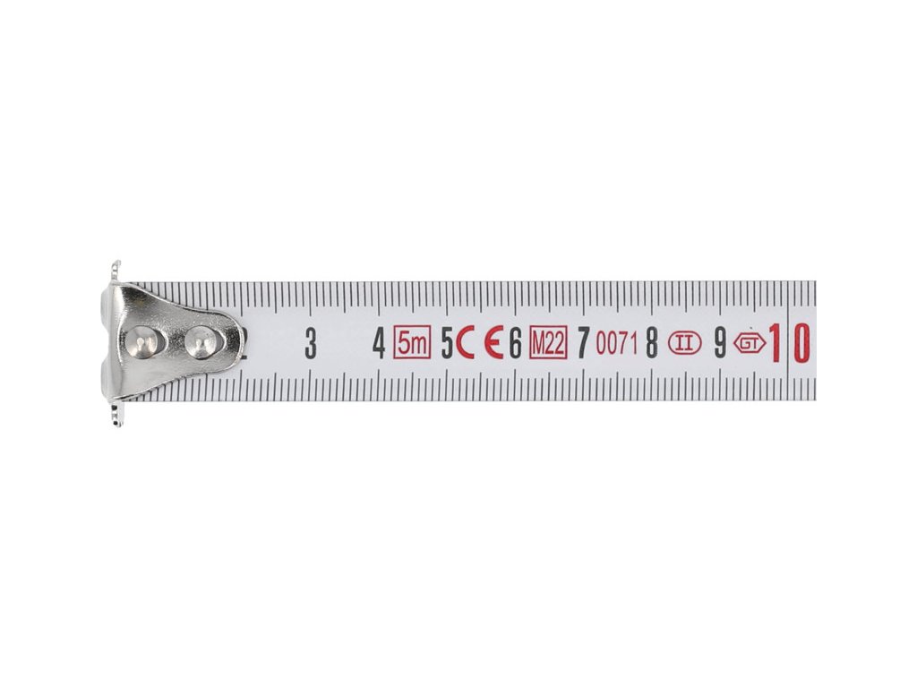 A szalag fehér, jól olvasható milliméteres beosztással, rugalmas acéllemezből készült, 19 mm széles. A felületet nylon bevonat védi a kopástól és a napfény okozta elszíneződéstől.