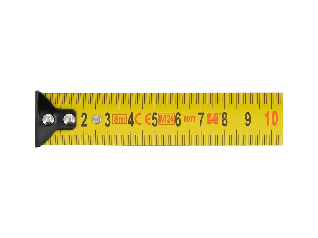 8 méter hosszú, acél mérőszalaggal rendelkező tekercselt mérőszalag. A II. osztályú mérési pontosságban készült. Rövid zsinórral felszerelt, amelyet kényelmesen át lehet húzni a csuklón, vagy fel lehet akasztani rá a mérőszalagot.