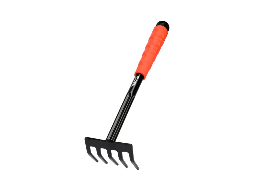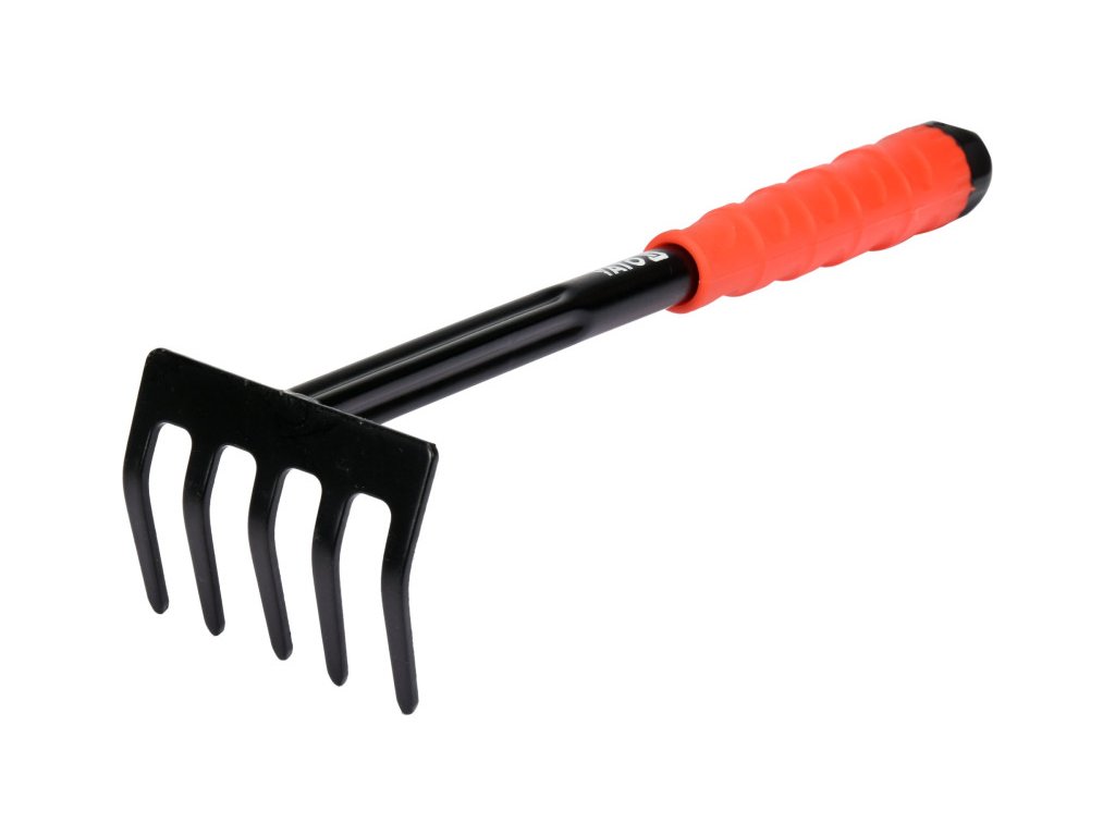 Kis gereblyék, ideálisak kiskerti munkákhoz. Különösen hasznosak ágyások és sűrűn növő növények közötti ágyások gondozásához. A gereblye munkarésze acélból készült, a nyél - műanyagból.
