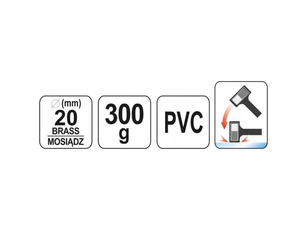 YATO plastové a mosadzné kladivo 300 g, nekvapiace, priemer 20 mm
