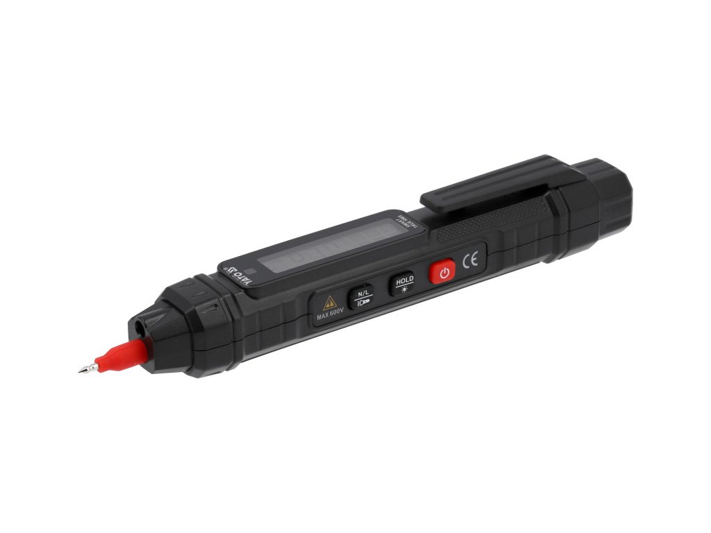 Univerzális tollmérő intelligens technológiával. Nem csak automatikusan választja ki a mérési tartományt, hanem önállóan felismeri a méréstípust is: ellenállás, áramkör folytonossága, DC vagy AC feszültség. A mérő nagyon könnyen használható. Miután bekapcsolta, csak alkalmaznia kell a mérési bíróságokat az akkumulátor klemmjeire, például, majd leolvasni az eredményt.