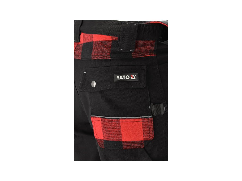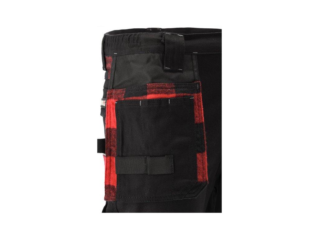 Szerelő nadrág elasztánnal, tizennégy zsebbel, köztük kettő tépőzárral és egy csattal. A számos alapzseb és összeszerelő zseb, melyek tartós anyagból készültek, segítik az asztalos, tetőfedő vagy vízvezeték-szerelő munkájának szervezését. A fő anyag pamut, elasztán hozzáadásával. A pamut, mint természetes anyag, nagyon jól bírja a test terhelését, jól lélegzik a bőr, és elegendő súly és a szövés és varrás technikája mellett kielégítő szakadásellenállás érhető el. Egy másik előny, hogy nagyobb védelmet nyújt a szikrák ellen, pl. a fémvágáshoz képest műanyag anyagoknál. Az elasztán a rugalmasságot befolyásolja és jobban alkalmazkodik a nadrág a testhez. A zsebeken lévő piros-fehér flanel anyag dekoratív funkciót tölt be, míg a hátsó részen a nadrágszíj alatt javítja a kényelmet, illeszkedést és hőtulajdonságokat ezen a testrészen. Alapadatok: anyag: 97% pamut, 3% elasztán Súly: 300 g/m² munkaszervezés: az öv alatt elől két többszörös összeszerelő zseb összesen 6 zsebbel és két szerszámhurokkal az összeszerelő zsebek alatt két nagy főzseb a bal lábon Két zseb egy tépőzárral rögzített fedelettel a jobb lábon két keskeny zseb, pl. kést és fa mérőpohárra, és kalapács hurkával a derék alatt az öv alatt két nagy zseb, köztük egy fedéllel és csattal rögzített zárral a térdnél zsebek kopásálló anyagból kopásálló anyagokból készült beszúrásokhoz, pl. 74595 További információk: dupla varrások és többszörös pántok a szakadásnak kitett helyeken cipzárral és rézgombbal rögzítve a deréknál az oldalakon bevarrt gumit húzva vad téglákat a nadrágszíjon négy fényvisszaverő csík javítja a láthatóságot, két a hátulsó zsebeknél és két a táplálkozásra szolgáló zsebeknél, megfelelnek a (EU) 2016/425 rendelet munkaruházatra és kategóriára vonatkozó követelményeinek.