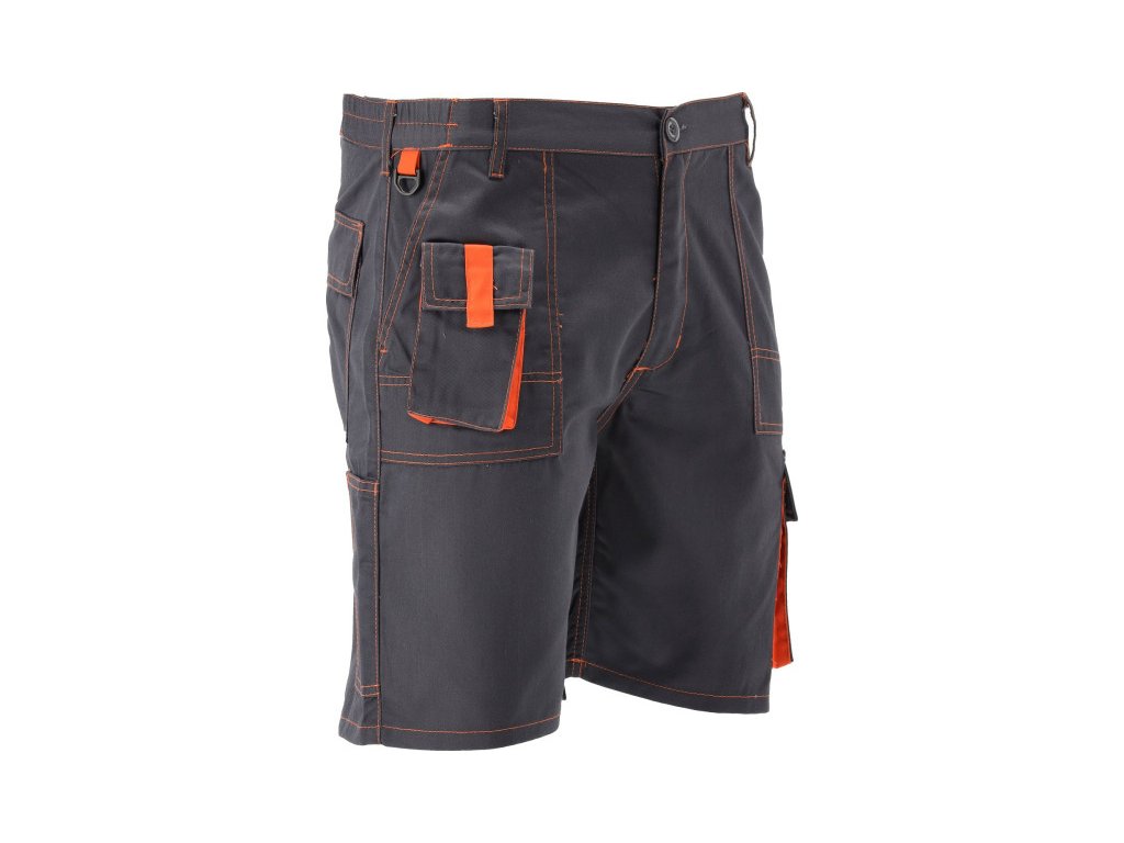 Rövid munkanadrág hét zsebbel, közülük négy tépőzárral. A fő anyaga pamut és poliészter megfelelő arányban. Ez a megoldás lehetővé teszi mindkét anyag erősségeinek kihasználását, beleértve a nagyobb szakítószilárdságot és a jó légáteresztést. Alapadatok: anyag: 35% pamut, 65% poliészter súly: 245 g/m² munkaszervezés: az öv alatt elöl két nagy zseb megerősített aljjal, belül további anyagrétellel, és a jobb oldalon egy kis, tépőzárral rögzített zseb, a bal lábszáron egy nagy, tépőzárral rögzített zseb, a jobb lábszáron egy keskeny zseb, pl. tapétavágókés számára. & nbsp; A hátulján, az öv alatt két nagy, tépőzárral rögzített zseb, elöl az övön egy karabiner kulcsokkal. További információ: szakadásnak kitett helyeken dupla varrások, cipzárral és nagy gombbal rögzített derékrész, oldalt bevarrt szabályozó. (EU) 2016/425 rendelet a munkaruha és kategória szerint.