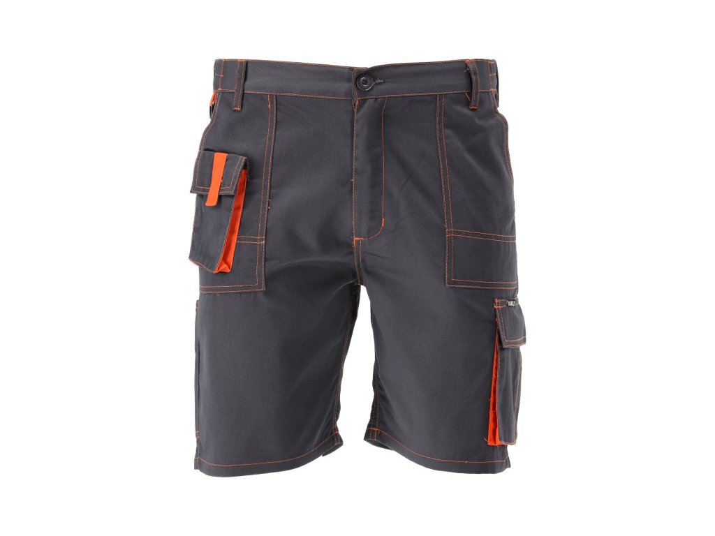 Rövid munkanadrág hét zsebbel, köztük négy velcroval rögzített. A fő anyag pamutból és poliészterből készült arányos keverék. Ez a megoldás lehetővé teszi mindkét anyag előnyeinek kihasználását, beleértve a nagyobb szakítószilárdságot és a jó légáteresztő képességet. Alapvető adatok: anyag: 35% pamut, 65% poliészter súly: 245 g/m² munkaszervezés: az öv alatt elől két nagy zseb erősített aljú, belül további anyagréteggel és a jobb oldalon egy kis rávarrt zseb tépőzárral, bal lábon egy nagy zseb tépőzárral, a jobb lábon egy keskeny zseb pl. tapétakésnek Hátul, az öv alatt két nagy zseb tépőzárral, az övön elől karabiner kulcsokkal További információk: dupla varrások a szakadásnak kitett helyeken, cipzárral és nagy gombbal rögzített deréknál, az oldalán varrt (EU) 2016/425 rendeletnek megfelelő munkaruházat és kategória.