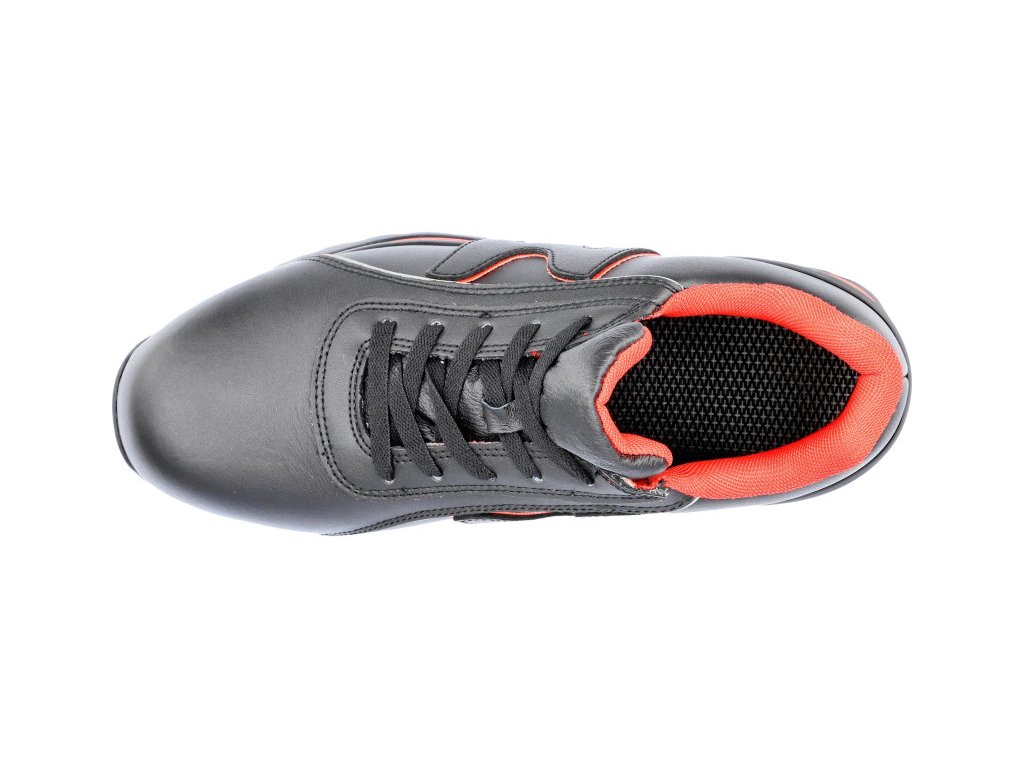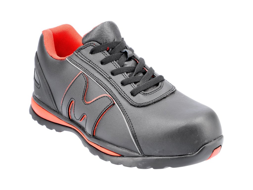 A félcipőkben nincs fém. Az átszúrásbiztos betét és a gumi talp mind rugalmasak, és - a hagyományos PU talppal és acél betéttel ellátott cipőkkel ellentétben - nem korlátozzák a lábközép hajlítását. A természetes szemcsés bőr felsőrész reflexcsíkokkal van díszítve, hogy javítsa a viselő láthatóságát.