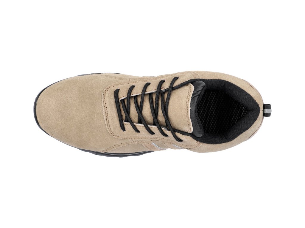 Topánky neobsahujú kov Vložka proti prepichnutiu aj gumená podošva sú flexibilné a - na rozdiel od tradičných topánok s PU podrážkou a oceľovými vložkami - neobmedzujú ohyb metatarzálnej kosti Zvršok vyrobený z prírodnej semišovej kože je vybavený reflexnými vložkami, čím zlepšuje viditeľnosť užívateľa.