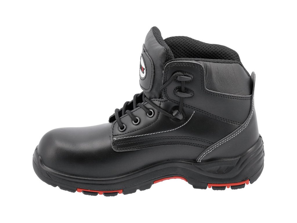A TARAN S3 sorozatú könnyű munkavédelmi csizma ütésálló kompozit orrmerevítővel, rugalmas átszúrás elleni betéttel és két anyagból készült talppal rendelkezik, melynek csúszásmentes gumi járófelülete speciális barázdákkal és tartós PU betétekkel van ellátva. Többek között a cipő növeli a járás kényelmét, köszönhetően a lábhoz igazodó talpbetének.