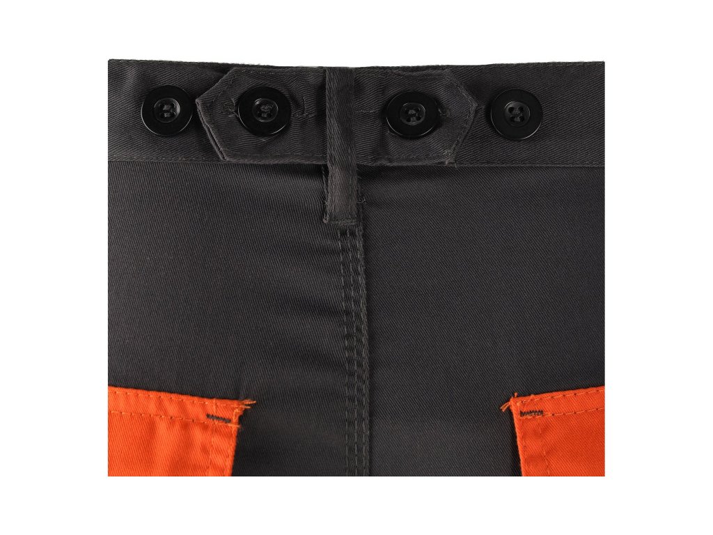 Munkanadrág kilenc zsebbel, ebből hat Velcro rögzítésű, és külön zsebekkel tápanyagok számára. A fő anyag a pamut és a poliészter megfelelő arányú keveréke. A szakadási szilárdság hasonló a 100% pamutból készült nehezebb ruhákhoz, miközben a kis súly a anyagot könnyűvé és tökéletesen alkalmasabbá teszi a melegebb napokra. A leginkább szakadásnak kitett helyeken a anyag összeköttetéseire hármas varrásokat használtak. Alapadatok: anyag: 35% pamut, 65% poliészter súly: 190 g/m² munkaszervezés: az öv alatt az elején többfunkciós zsebek, beleértve két fő zsebet, két felvarrt zsebet Velcro csatból készült anyaggal erősített anyagellenállással, és egy további felvarrt zsebet egy Velcroval rögzített fedelet tartalmaz a bal lábon, egy nagy zseb fedővel, Velcroval rögzített a bal lábon szövetből készült hurokban, pl. egy kalapácsra a jobb lábon, egy keskeny zseb anyagból erősített kopásállósággal, pl. egy tapétakésre A derék alatt hátul két nagy zseb fedővel, Velcroval rögzített, félig -burkolt anyag erősített kopásállósággal a Velcro hurok hátulján, pl. egy feltekert kábel vagy tok a térdnél, kopásálló anyagból készült zsebek a betétekhez, pl. 74595 További információ: Háromszoros varrások a szakadásnak kitett helyeken rögzített zipzárral és gombbal a deréknál szélesség beállítása gombokkal a követelményeknek megfelelően a (EU) 2016/425 szabályozás szerint a munka- és kategória ruházatra.