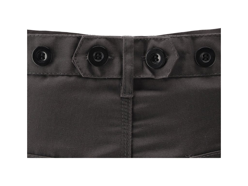 Munkanadrág kilenc zsebbel, köztük hat tépőzárral és speciális tápanyag-zsebekkel. A fő anyag a pamut és a poliészter megfelelő arányú keveréke. Ez a megoldás lehetővé teszi a két anyag erősségeinek kihasználását, beleértve a nagyobb szakítószilárdságot és a jó légáteresztő képességet. A leginkább szakadásnak kitett helyeken a anyag összekötéséhez háromszoros varrásokat használtak. Alapadatok: anyag: 35% pamut, 65% poliészter súly: 267 g/m² munkaszervezés: az öv alatt elöl többfunkciós zsebek, beleértve két fő zsebet, két felvarrt zsebet tépőzárral, anyaggal, anyaggal, megerősített kopásállóságú anyaggal és egy további felvarrt zsebet tépőzárral rögzített fedéllel a bal lábon, egy nagy zseb tépőzárral rögzített fedéllel a bal lábon, egy textil hurokba varrt kalapácsra a jobb lábon, egy keskeny zseb, megerősített kopásállóságú anyagból, pl. tapétakésre A dereka alatt hátul, két nagy zseb, tépőzárral rögzített lapokkal, félig - bevont anyaggal, megerősített kopásállósággal a derekában elöl az övlabist kulcsokkal a dereka hátul az öv hátul tépőzárral, pl. feltekert kábellel kopásálló anyagból készült betétekhez, pl. 74595 További információ: háromszoros varrások a szakadásnak kitett helyeken, cipzárral és gombbal az övben szélesség szabályozása a deréknál gombokkal megfelelnek a (EU) 2016/425 rendeletben foglalt követelményeknek a munkaruházat 1. kategóriája esetében.