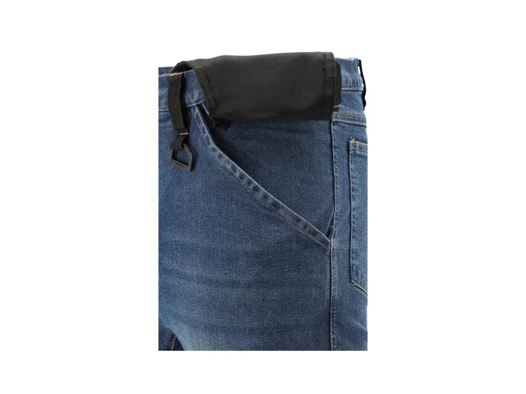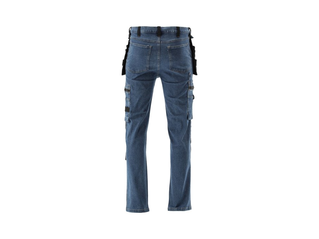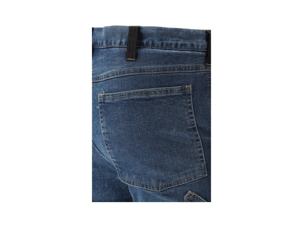 Szerelőnadrág elasztánból, dörzsölt és rugalmas denim anyagból. Akár tizenhét zsebbel, köztük egy tépőzáras, két cipzárral zárható és két levehető szerelőzsebbel. A számos alapzseb és a masszív anyagból készült illesztőzsebek segítenek a munka szervezésében például egy asztalos, tetőfedő vagy vízvezetékszerelő számára.