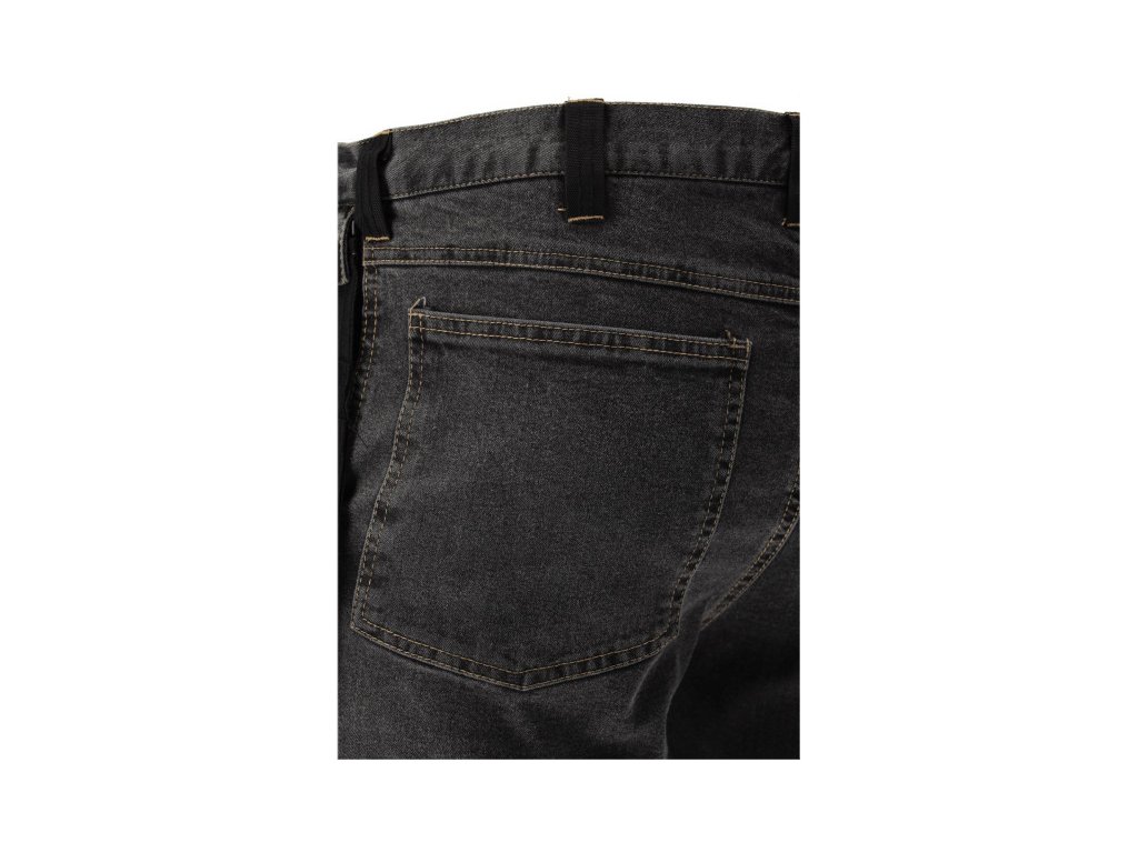 Szerelő munkanadrág elasztánnal, kopott és rugalmas farmer anyagból. Akár tizenhét zseb, köztük egy tépőzáras, kettő cipzáras és két leszedhető szerelőzseb. A sok alapzseb és szerelőzseb strapabíró anyagból segít a munka szervezésében az ácsmesternek, tetőfedőnek vagy vízvezeték-szerelőnek.