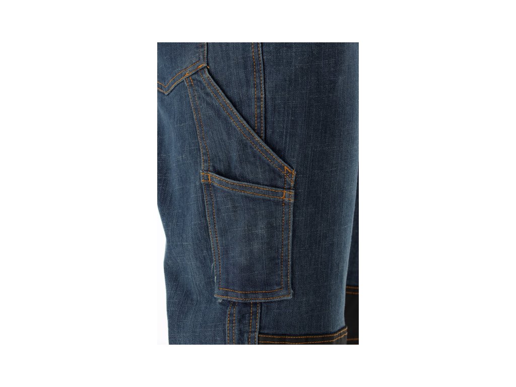 Szerelőmunkás nadrág a MARA sorozatból, elasztánból készült stretch denim anyagból. Tíz zseb, köztük egy multifunkcionális zseb a bal lábszáron. Térdvédő behelyezésére szolgáló lyukak a térdeken. A legsebezhetőbb területeken számos varrás és szegecs erősíti az anyag illesztéseit