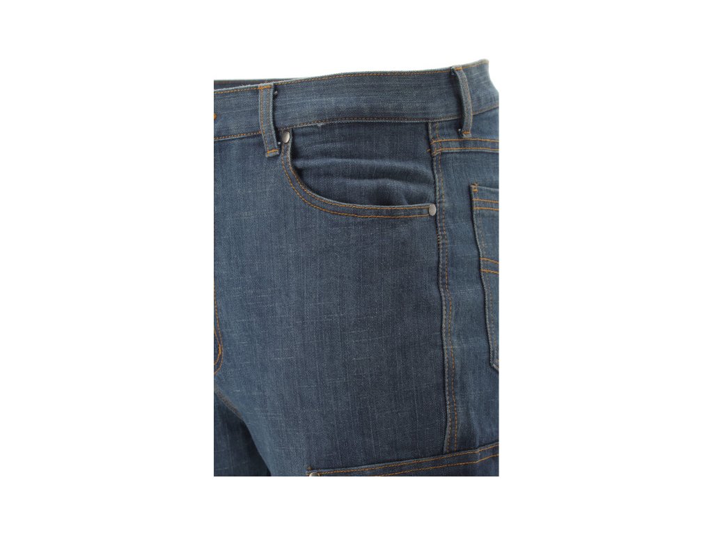 MARA sorozatú szerelőnadrág elasztánt tartalmazó nyúlékony denim anyagból. Tíz zseb, köztük egy multifunkciós zseb a bal lábon. Térdvédőknek való rések a térdnél. Számos varrás és szegecs erősíti a szövet illesztéseit a legsebezhetőbb területeken