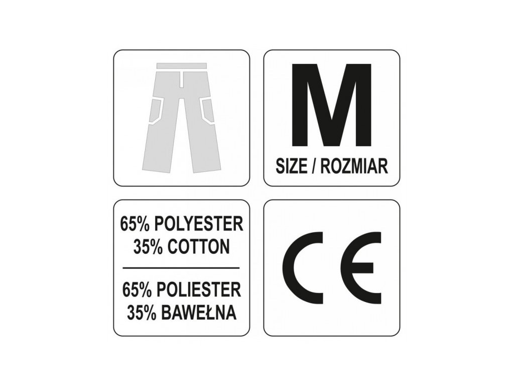 Munkanadrág öt zsebbel, ebből három tépőzárral és speciális zsebekkel átszúrható tárgyak számára. A fő anyag a pamut és a poliészter megfelelő arányú keveréke. Ez a megoldás lehetővé teszi mindkét anyag erősségeinek kihasználását, beleértve a nagyobb szakítószilárdságot és a jó légáteresztést. A leginkább szakadásnak kitett helyeken a anyag összekötéséhez hármas varrásokat használtak. Alapadatok: anyag: 35% pamut, 65% poliészter súly: 240 g/m² munkaszervezés: deréknál két anyagból készült zseb, amelyek megerősített kopásállósággal rendelkeznek a bal lábszáron nagy zseb fedőlappal, tépőzárral rögzítve a deréknál két öv két nagy zseb fedőlappal, tépőzárral rögzítve, megerősített kopásállóságú anyagból a nadrág elején kulcstartó a hátsó övnél a hátulján betéteknek szánt helyek, pl. 74595 További információ: Hármas varrás a szakadásnak kitett helyeken, cipzárral és gombbal rögzítve a deréknál szélesség állítható a deréknál gombokkal az oldalán. Bevarrt szoros gumírozás megfelel az (EU) 2016/425 rendelet követelményeinek a munkaruházat és kategória tekintetében. & nbsp;