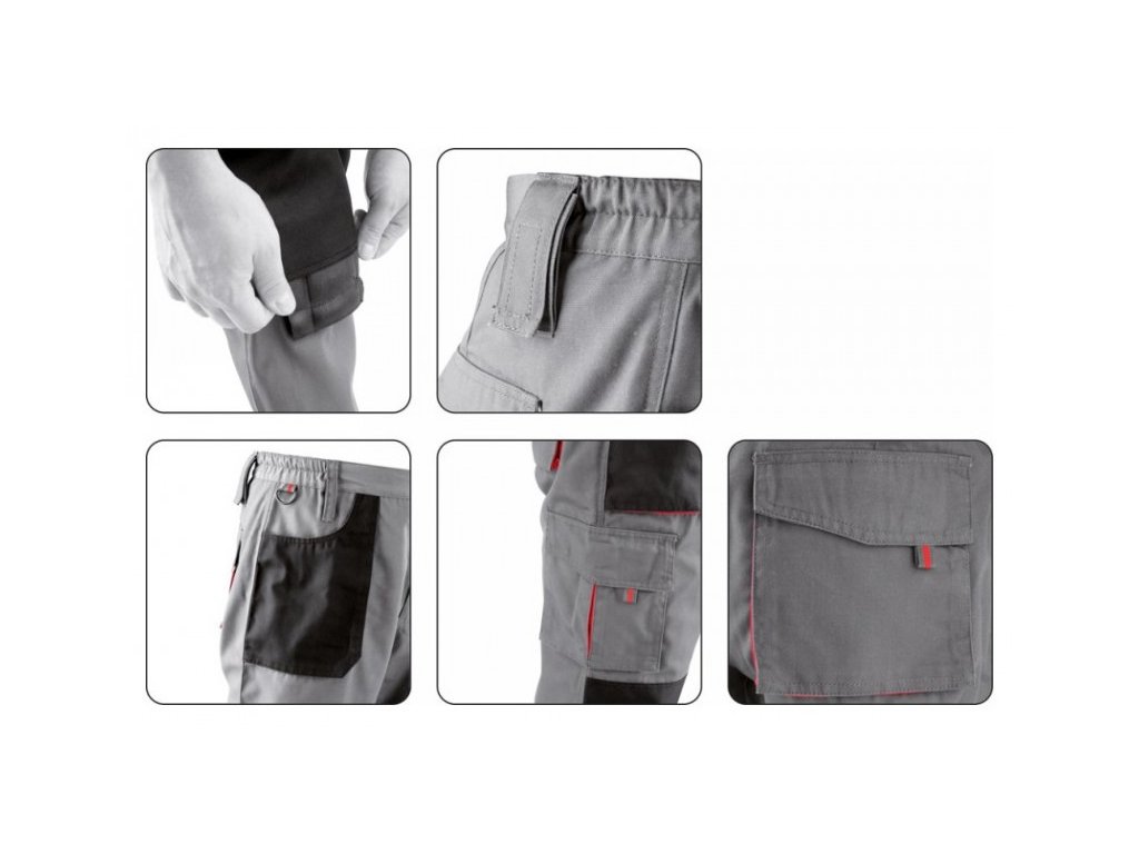 Munkanadrág öt zsebbel, ebből három tépőzáras és speciális zsebekkel átszúrásokhoz. A fő anyag a megfelelő arányban kevert pamut és poliészter. Ez a megoldás lehetővé teszi mindkét anyag előnyeinek kihasználását, beleértve a megnövelt szakítószilárdságot és a jó légáteresztést. A leginkább szakadásnak kitett helyeken a anyagok összekötésére hármas varrásokat használtak. Alapadatok: anyag: 35% pamut, 65% poliészter súly: 240 g/m² munkaszervezet: öv alatt elöl két anyagzsebbel, melyeket fokozott kopásállóságú anyag erősít, bal lábon nagy zseb tépőzárral, öv alatt két nagy zseb tépőzárral, melyeket kopásálló anyag erősít, elöl a derékrészen kulcslyuk, hátul a derékrészen nonszensz betétekhez, pl. 74595 További információk: hármas varrások a szakadásnak kitett helyeken, cipzárral és gombbal rögzített derékrész, derékszélesség gombokkal állítható, oldalt bevarrt szoros gumival, megfelel az (EU) 2016/425 rendelet követelményeinek a munkaruházatról és kategóriáról. & nbsp;