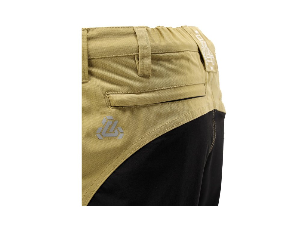 A főanyag a megfelelő arányban kevert pamut/poliészter. Ez a megoldás kihasználja mindkét anyag előnyeit, többek között a nagyobb szakítószilárdságot és a jó légáteresztést. A kontrasztos színű betétek nylonból és elasztánból készültek. Tartós és nyúlós, jelentősen növeli a kényelmet, különösen a szokatlan pozíciókban.
