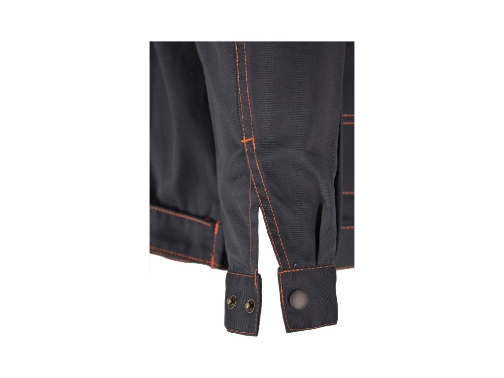 Munka pulóver öt zsebbel és hónalj szellőzéssel. A fő anyag egy pamut és poliészter keveréke a megfelelő arányokban. Ez a megoldás lehetővé teszi mindkét anyag erősségeinek kihasználását, beleértve a szakadás elleni nagyobb ellenállást és a jó légkeringést: alapadatok: anyag: 35% pamut, 65% poliészter súly: 245 g/m² munkaszervezés: két zseb tépőzárral a bal mellzseben zseb tépőzárral a jobb mellzseben két nagy zseb két nagy zseb az öv területén, további információk: dupla varrások a szakadásra hajlamos helyeken cipzárral rögzíthető, szélvédő tűvel ellátott szellőzőnyílások a hónaljban, mandzsettával végződő ujjak mandzsettával rögzíthető kapcsok a pulóver aljának szélességének a patentok segítségével történő beállítása megfelel az (EU) 2016/425 rendelet munkaruházatra és kategóriára vonatkozó követelményeinek.